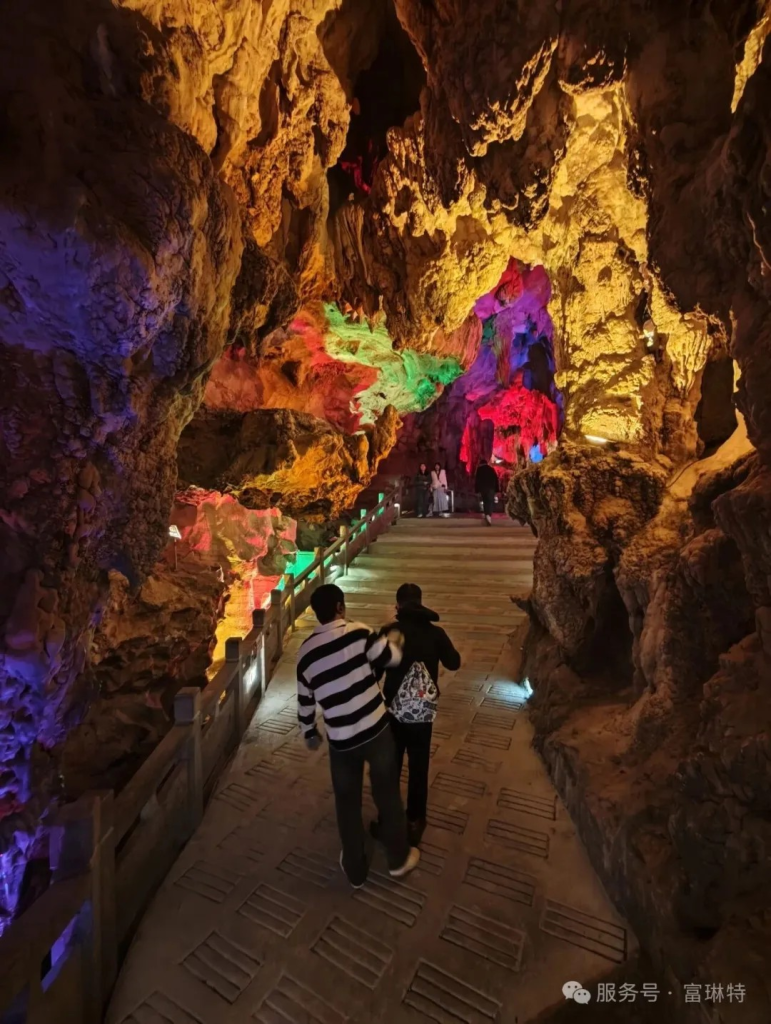 管理层与优秀员工们一同探秘银子岩溶洞,大自然鬼斧神工造就的“三绝三宝”让人叹为观止,钟乳石在灯光下宛如银河碎银闪烁,地下河潺潺水声相伴。团队集体乘船穿行其间,仿佛闯入神秘地下仙境,更携手体验AI伴游财神“垚岩子”的趣味互动,新奇体验让欢声笑语不断,也让团队凝聚力在共同探索中悄然升温。